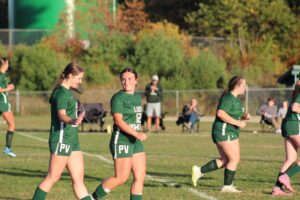 PVHS images in this story with permission from Sabrina Theriault- Team photo, #11 Moulton and #12 Veino after a goal, #21 Cummings tries to move past a Houlton defender