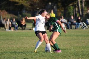 After 40 minutes it was knotted up at 1, even with PVHS holding a 10-3 shot advantage. Rylee Moulton scored the first goal of the contest for Penobscot Valley as she broke past the back line and tucked the ball in the lower right corner with 26 minutes remaining in the half. Talented Houlton sophomore Keytonya Skepple tied it 15 minutes later as she maneuvered past defenders and fired it into the left corner.