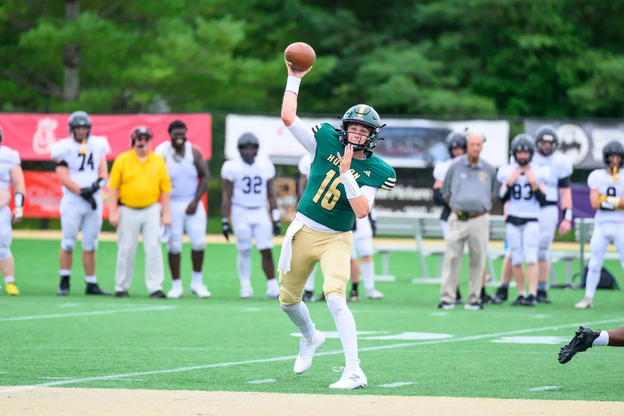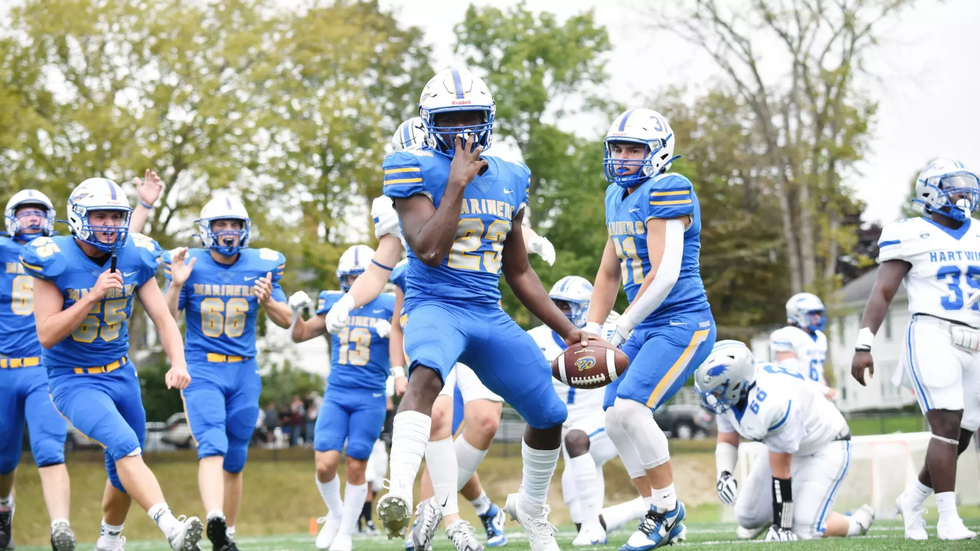 *Paul Gorry went 21-23 passing for 257 yards and four touchdowns, as the Golden Bears (5-4, 3-3 CNE) rolled to the road win. Auston Harris ran for 151 yards and a touchdown for the Mariners (0-9, 0-6).