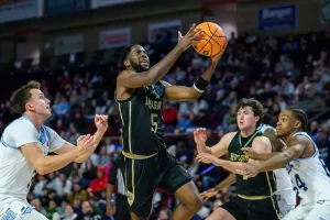 Connor Heald had a game-high 22 points on Saturday afternoon, to lead Husson men’s basketball to a 70-60 victory over UMaine-Presque Isle in the Eagles home conference opener in Bangor.